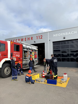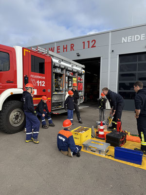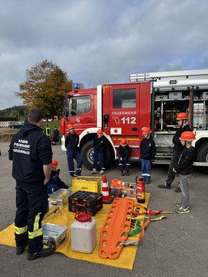 Der Berufsfeuerwehrtag startete mit mehreren Stationen. Gleich zu Beginn ging's darum, einen Bereistellungsplane aufzubauen und die richtige Verkehrsabsicherung aufzubauen.